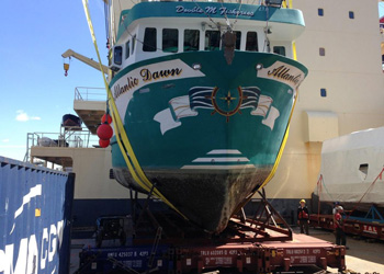 EAF SKY New York office recently assisted in the handling and movement of a 40 ft fishing trawler moving from New York to New Zealand. Our services included arranging for the building and positioning of a cradle for the ship to rest on while be forwarded.